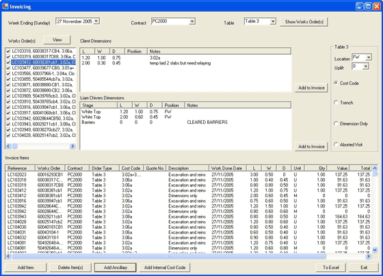 The previously manual invoicing procedure involved looking up values in a series of complex tables and performing calculations to arrive at amounts to be invoiced. This procedure has been automated within the CIS database.
