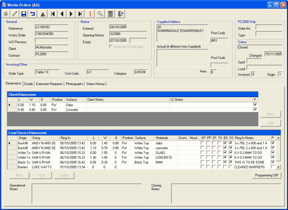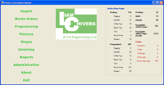 Each afternoon, Liam Chivers (Civil Engineering) Ltd receive jobs or works orders for the next working day from their client in the form of Excel spreadsheets as Email attachments. (Jobs are for reinstatement works i.e. backfilling pavement and/or highway dimensions, or holes, followed by black top/tarmac or white top/slabs resurfacing).